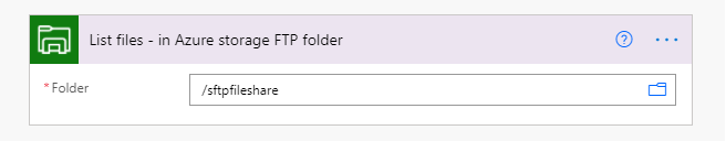 Referring to Figure 3, the third action is ‘List files – in Azure storage FTP folder’ (‘Azure File Storage’ actions are shown in Figure 11). The expanded form of this is displayed in Figure 5. This specifies the Azure File Share to retrieve the file from