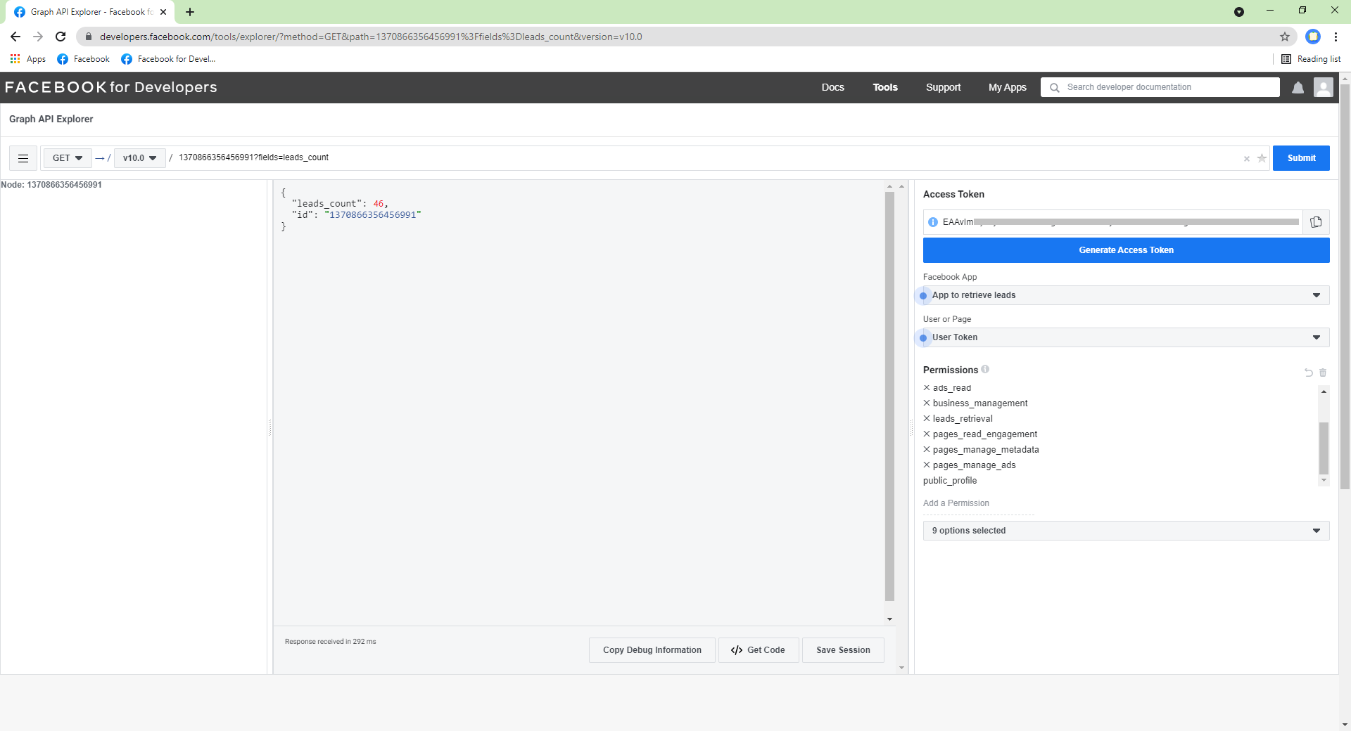 1.) Request ‘Advanced Access’ for the business app ‘App to retrieve leads’