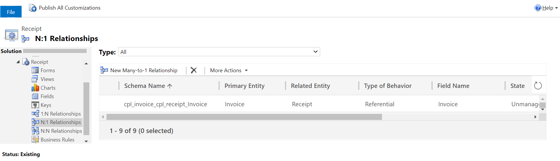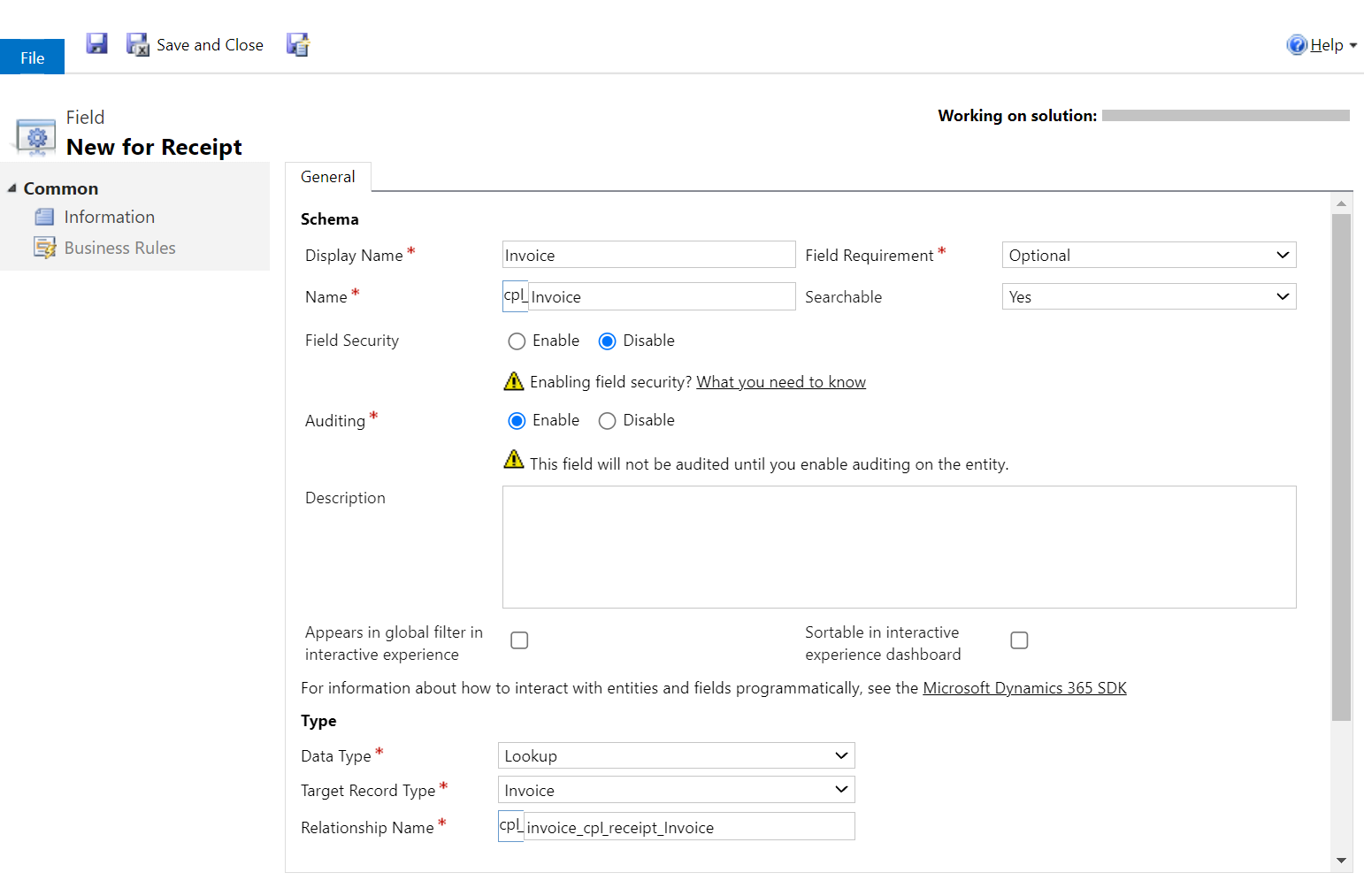 1.) In the Receipt entity, a lookup field is created which also establishes a relationship between the Receipt and Invoice entities (Figure 3)