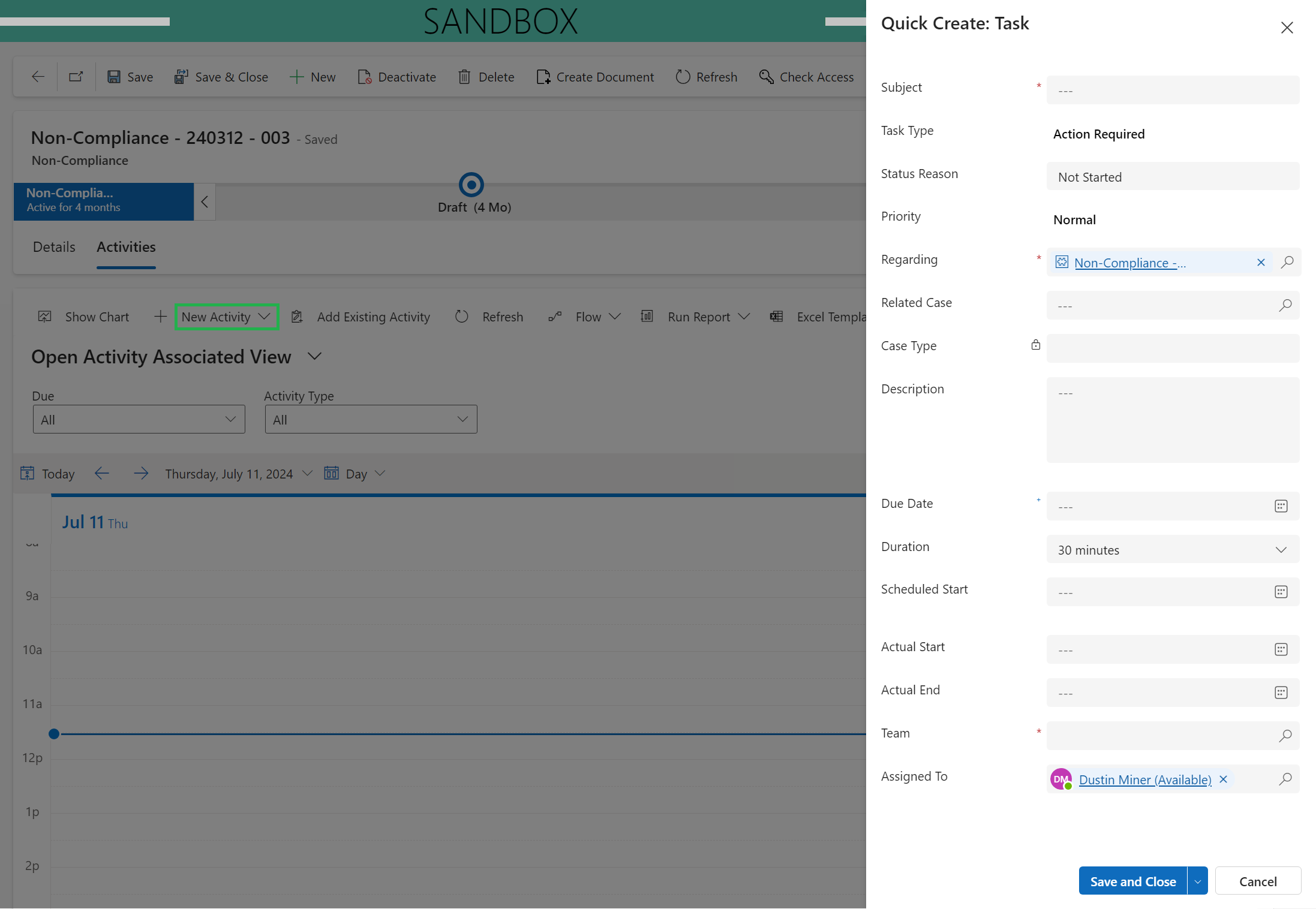 Consider the situation where the Task activity needs to be associated to a custom entity called Non-Compliance. That is, there is a requirement to set the ‘regarding’ polymorphic lookup of Task to the Non-Compliance entity. (Figure 2)