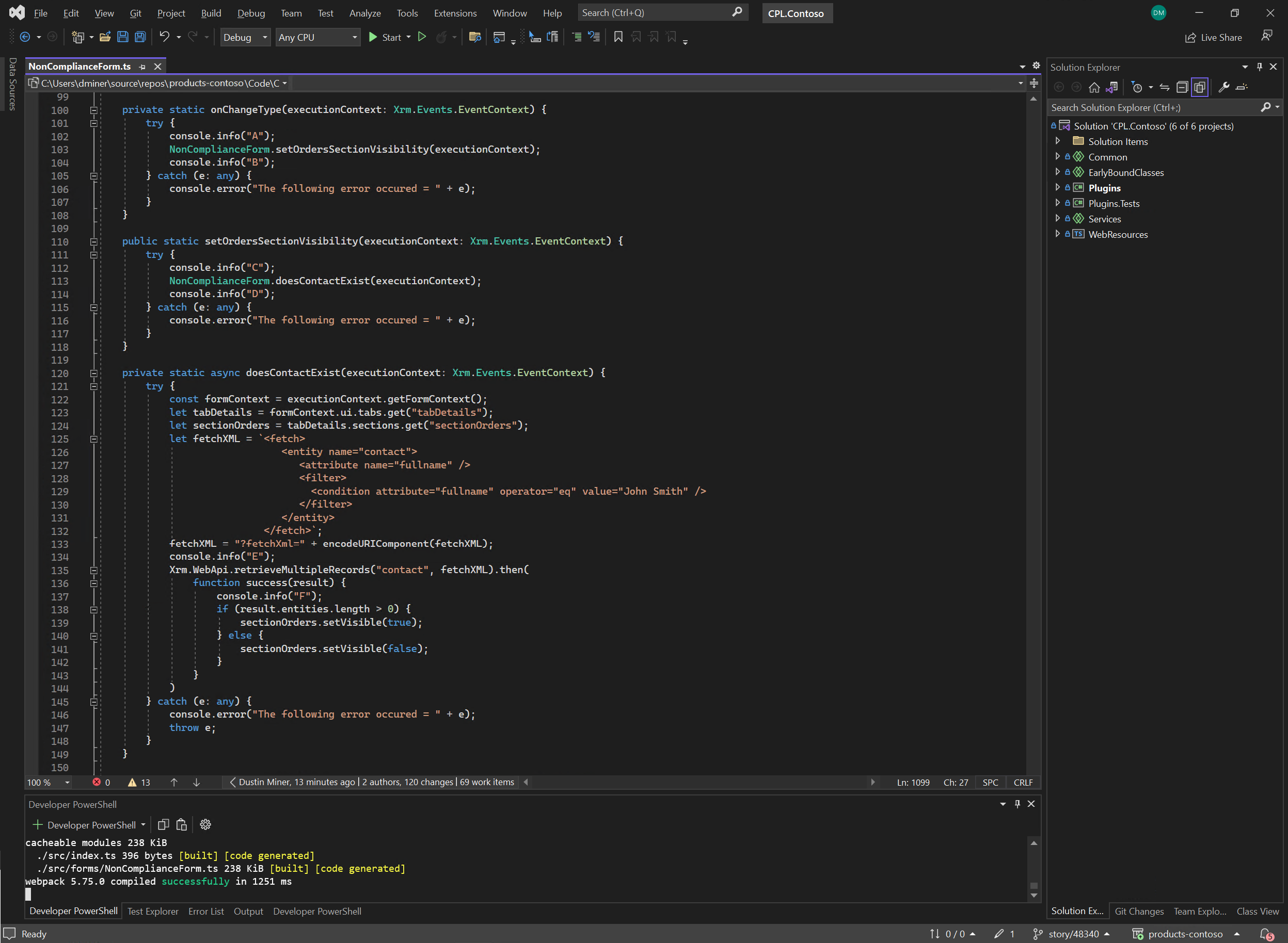 Note that this pattern is considered asynchronous because the execution doesn’t wait for Xrm.WebApi.retreiveMultipleRecords() to respond (line 135)
